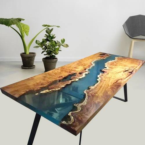 优广河流桌树脂胶在室温25摄氏度时刻灌胶厚度为5公分左右,夏天室外或铁硼制作的话,建议分次灌胶,一次3公分左右为佳。