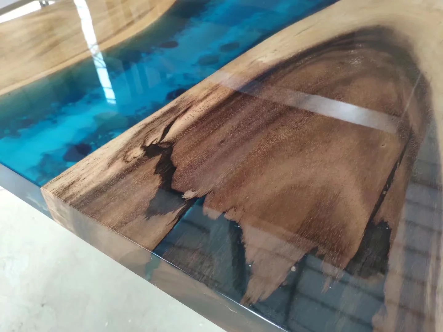 3、或许是胶水本身韧性不够好,若胶水中混合的是色粉,爆裂现象一般不会很明显,不影响河流桌的正常使用。但如果胶水中使用的是色精,那么如果发生了爆裂现象,那么只能把胶敲掉了。
