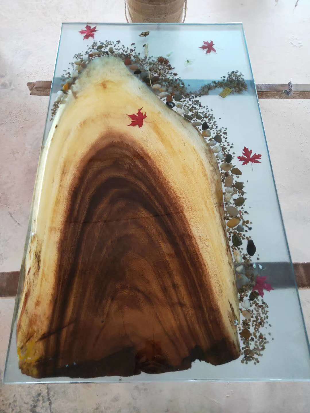 部份人因为灌胶过厚会出现开裂问题。开裂问题是由于室温过高,灌胶厚度太厚,内部反应放热,热量无法排出胶水而导致的现象。或许是胶水本身韧性不够好,若胶水中混合的是色粉,开裂现象一般不会很明显,不影响河流桌的正常使用。但如果胶水中使用的是色精,那么如果发生了开裂现象,那么只能把胶敲掉了。因此制作河流桌过程中务必控制好一次性使用的量。树脂河流桌胶水在室温25摄氏度时灌胶厚度为2公分左右为最佳。